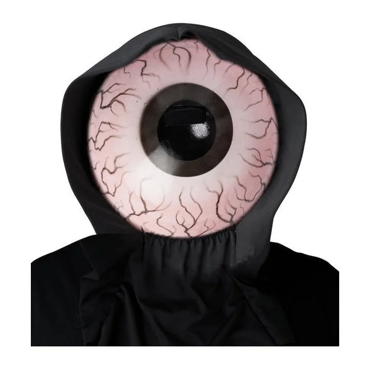 Keep a close eye on your surroundings when you wear this Optical Nerve Light Up Mask. This large mask is in the shape of a large eyeball with a white vitreous and veins around the edging, black coloured iris, and a pupil with a mesh window in the centre for you to see through. There is an attached black hooded and best of all this large mask glows in the dark. Great for your next Halloween party.