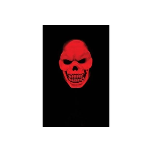 Product Description: It’s dead and red full of anger. The Skull Mask lights up red. It comes with an attached hood. Mask has a wired battery box / controller with 3 light settings: on, slow flash and strobe flash. Mask has two layers with light up EL wire in between. The glow works best in low light settings. Uses 2 x AA batteries (included).