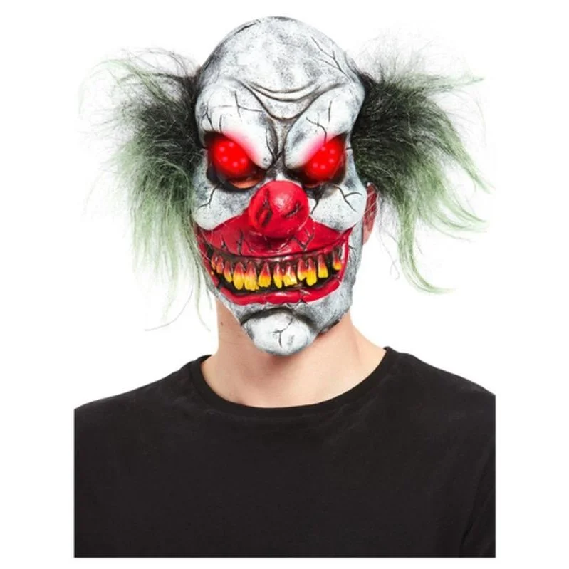 Evil Clown Overhead Mask, Latex, with Light Up Eyes