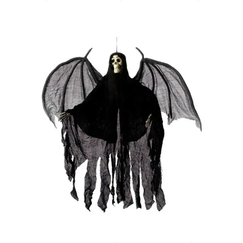 Hanging Skeleton Angel Decoration, Black, with Hooded Robe & Wings, Height 105cm