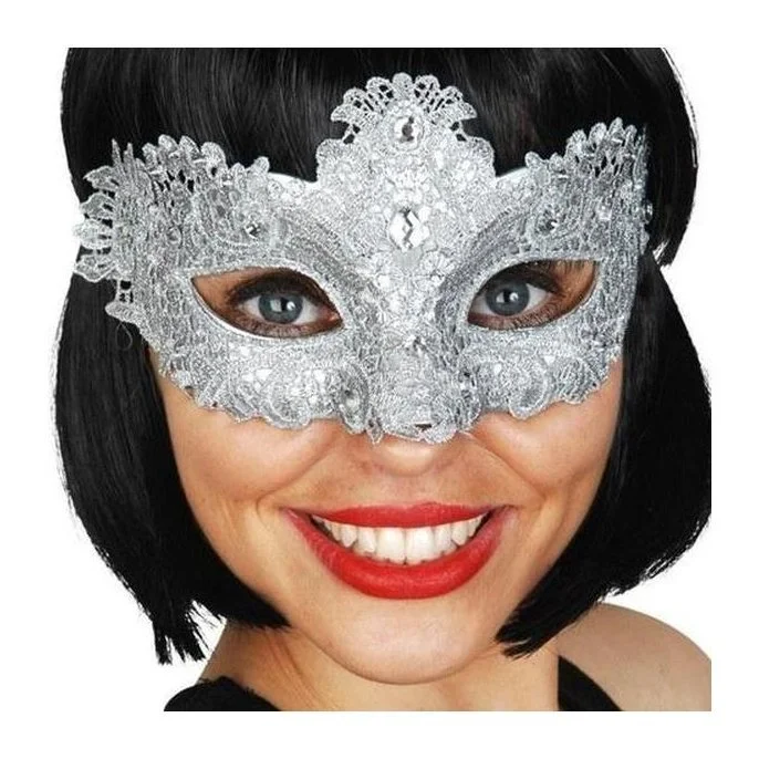 Lace masquerade mask decorated with crystals. Varition colours include Metallic Purple, Silver, Metallic Magenta, Turquoise, Black