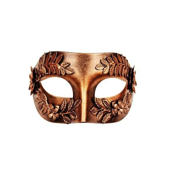 Simple, but still a stand-out… this basic copper masquerade mask will shine at your next fancy dress costume party or masquerade mask ball. This shiny metallic copper mask sits on ribbon ties, making this a very comfortable party mask to wear all night!